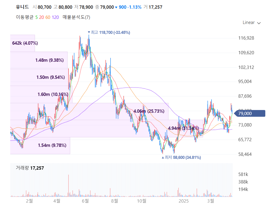A: 유니드는 최근 실적 기대감과 가성칼륨 가격 회복 덕분에 저점 대비 반등세를 보이고 있습니다. 특히 실적 발표 전후로 변동성이 커질 수 있으므로, 분할매수 전략이 효과적일 수 있어요.